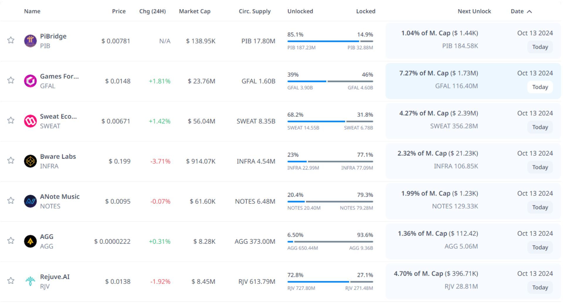Theo dữ liệu từ Cryptorank hôm nay có các Token unlock như sau: